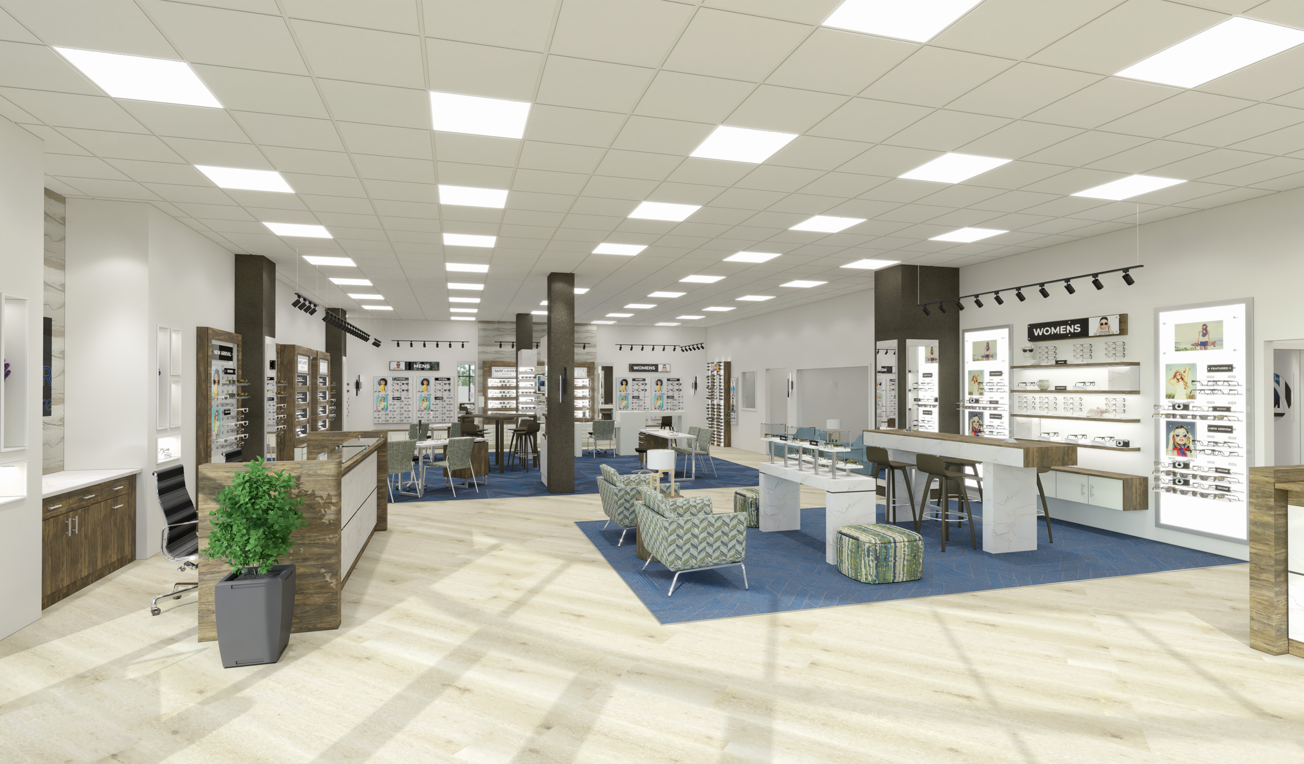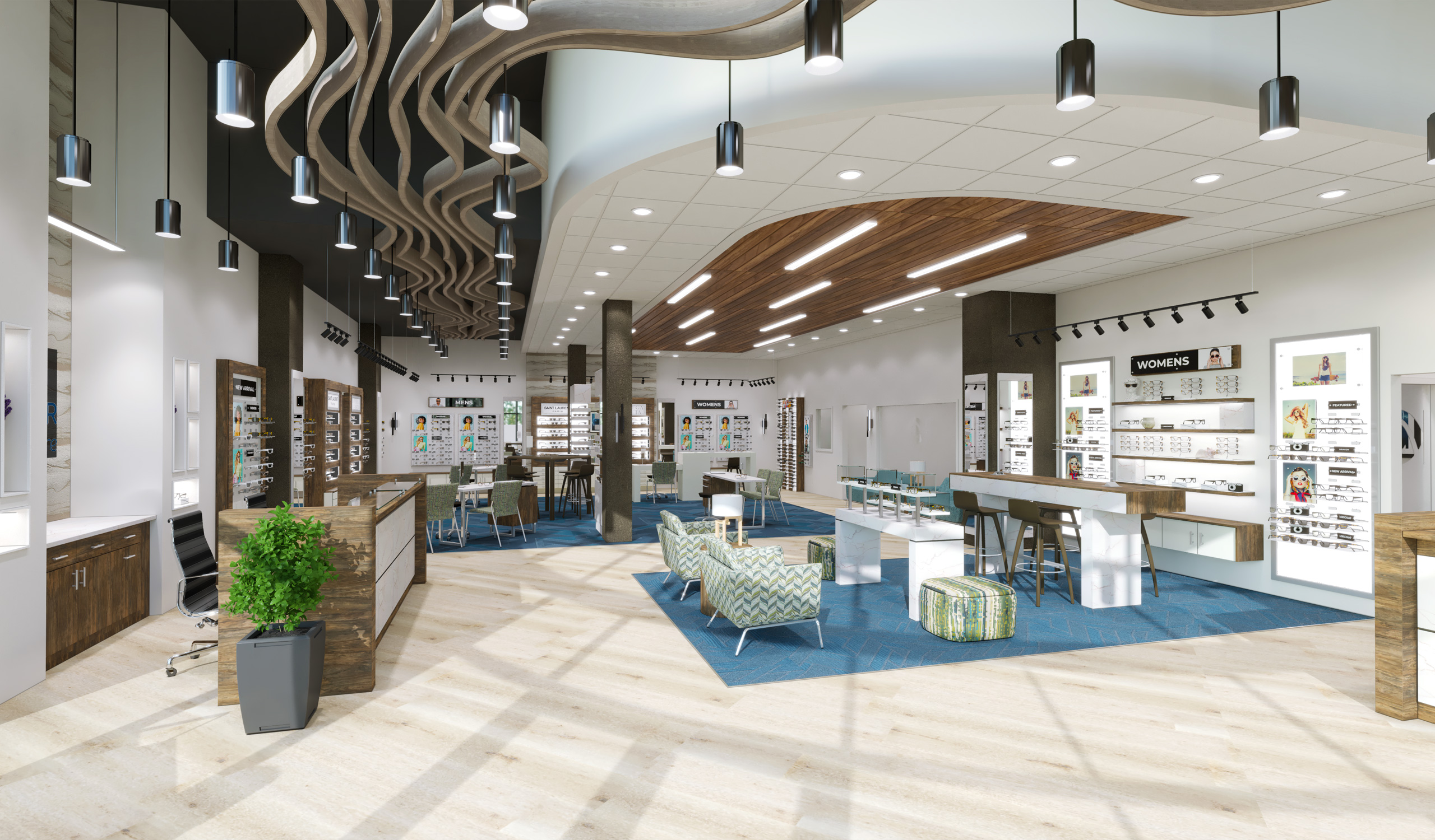 Ceilings are one of the largest surfaces in your optical environment and thus provides a tremendous opportunity for creating unique designs and lighting plans that make your optical come to life. LUM’s expert design team is the authority in optical lighting techniques using LUM’s exclusive architectural and decorative products to illuminate your space. Years of research and engineering have gone into the selection of the LUM LED product lines. The products achieve lighting that closely simulates the properties of natural daylight, which is best for patient evaluations, and product presentation.